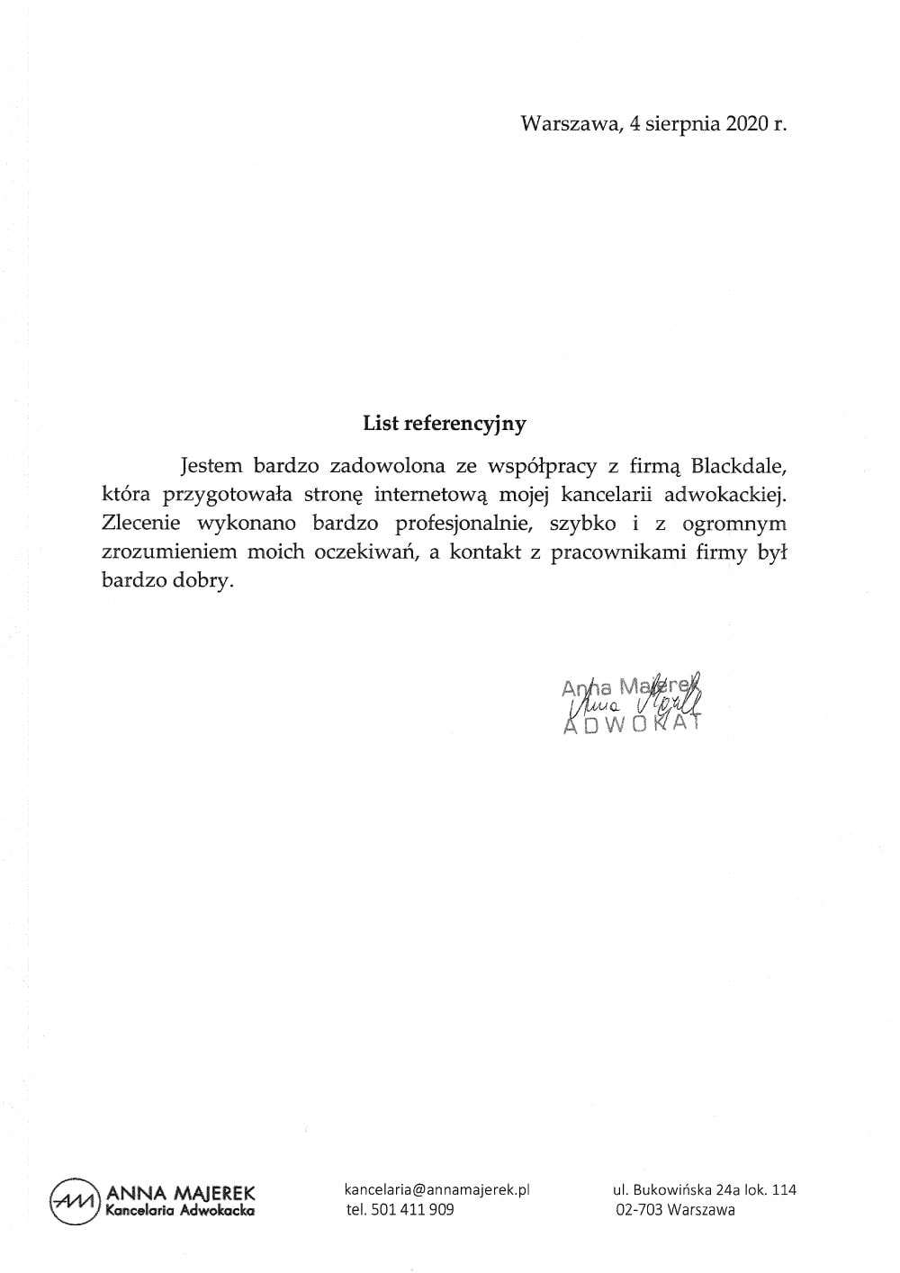 Z firmą Blackdale nawiązałam współpracę około rok temu i wykonali dla mnie już kilka projektów. Za każdym razem jestem bardzo zadowolona i z czystym sumieniem mogę polecić firmę dalej. Pan Tymoteusz zawsze realizuje pracę w terminie i odpowiada na wszystkie maile w tym samym dniu. Dodatkowo oprócz współpracy transakcyjnej zawsze mogę liczyć na doradztwo.